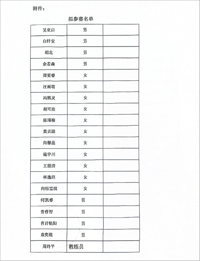 市体校关于2025年湖北省青少年乒乓球锦标赛参赛名单的公示