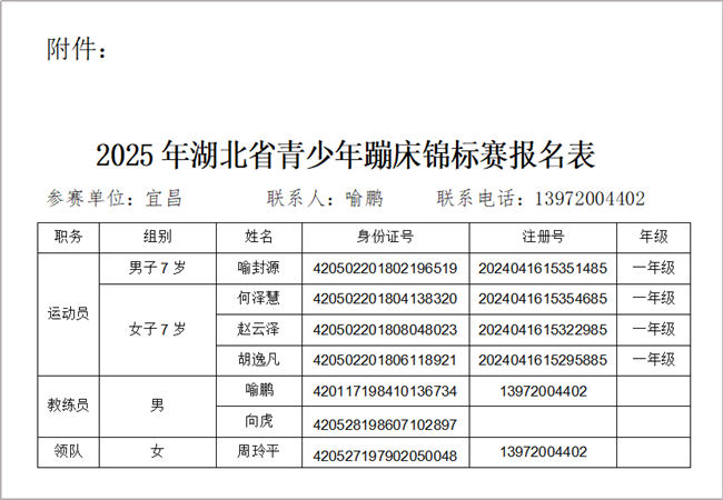 市体校关于2025年湖北省青少年运动会暨湖北省青少年蹦床锦标参赛名单的公示 |