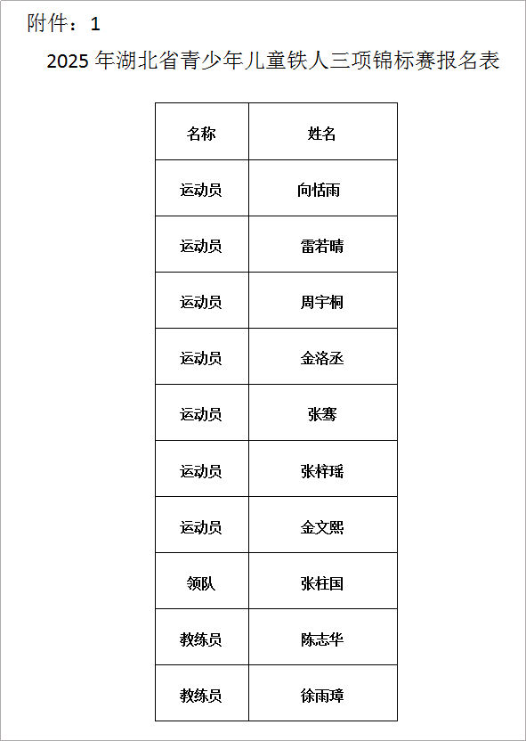 市体校关于2025年湖北省青少年儿童铁人三项锦标参赛名单的公示 |