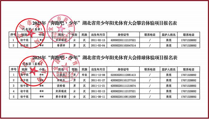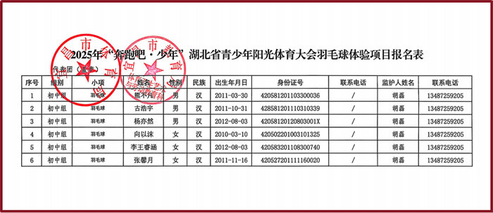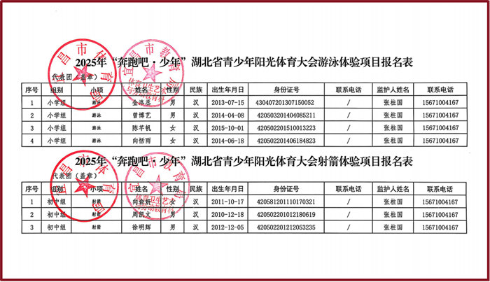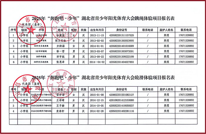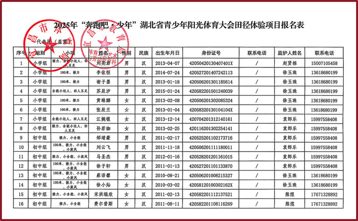 2025年“奔跑吧多少年”湖北省青少年阳光体育大会田径体验项目报名表