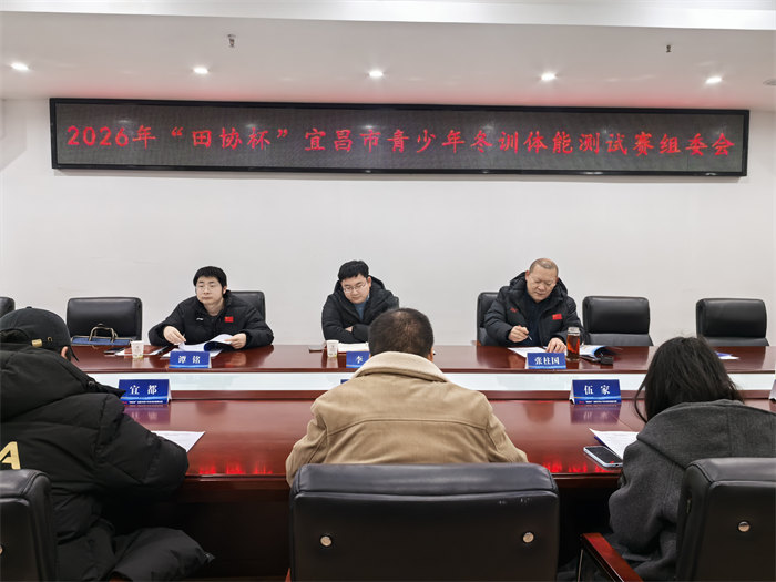 2月6日下午,2026年“田协杯”宜昌市青少年冬训体能测试赛组委会会议在市体育中心会议室召开。会议由宜昌市体校副校长谭铭主持,宜昌市体育运动学校副校长张柱国介绍了本次冬训体能测试赛筹备情况。张校长希望各县市区要以冬训备战为中心,大力提高备战的紧迫感、集体荣誉感、服务意识和全局意识,充分把握冬训这一重要时机,建立清晰的备战思路和举措,坚持靶向发力、精准施策,全方位高标准备战省运会。宜昌市文化和旅游局竞技体育科副科长李侃就赛事管理、赛事服务、安全保障等方面进行部署讲话,希望体校以周到、细心、诚心的态度,服务好赛事组织工作,为运动员、裁判员、教练员提供满意的服务,确保赛事顺利举办。