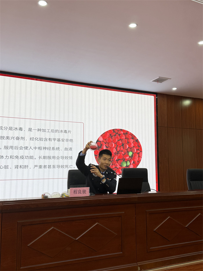 程警官带着他丰富的一线戒毒工作经验,用生动通俗的语言,为全体学生、班主任及管理人员带来一堂震撼人心的法治安全教育课。他深度剖析了毒品的真实面目,从传统毒品到极具欺骗性的新型伪装毒品,揭开它们的危害本质。