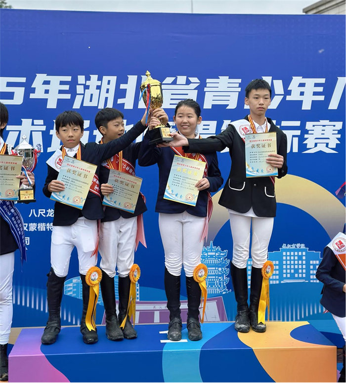 宜昌马术队:三金一铜破纪录,零罚分显实力 代表宜昌马术队出征的耀骏马术俱乐部,在两天两轮的激烈比拼中展现出强劲实力。骑手们与马匹配合无间,多次以“零罚分”的完美表现征服赛道,最终不仅斩获3金1铜的亮眼成绩,一举实现宜昌青少年马术在省级锦标赛上的历史性突破!