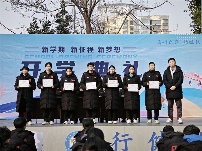 升旗仪式后,校党支部副书记姚金玲宣读表彰文件,随后对上学年学习、训练、工作突出者进行了表彰,鼓励全体师生向先进学习。