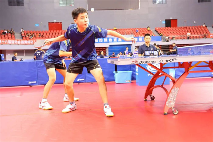 赛场上,精彩的比赛让人应接不暇。有一组选手特别引人注目,他们时而保持沉静,蓄势待发,侧上旋、侧下旋、或高抛、或下蹲……一个个发球让对手措手不及;时而腾空跃起,反拉、扣杀、或搓或切、或挤或削……各种攻防招式不断变换,从挥拍击球到收拍还原,一气呵成,配合高度默契,赢来阵阵喝彩。他们便是13-14岁组男子双打运动员杨颂文、贺俊遨,最后他们以绝对的优势斩获了该组比赛的金牌。