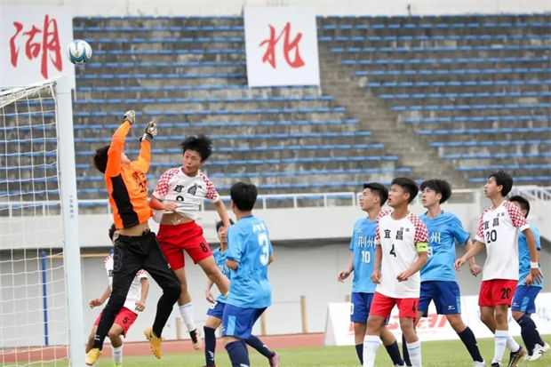 湖北省第十六届运动会“宜昌城发杯”青少年体育类(体校组)足球比赛(男子U15组)4月11日下午展开了第三轮比赛。在宜昌队和荆州队的角逐中,双方队员拼抢激烈,最终宜昌队更胜一筹,以10比0大比分战胜对手,获得前三轮的连胜战绩。