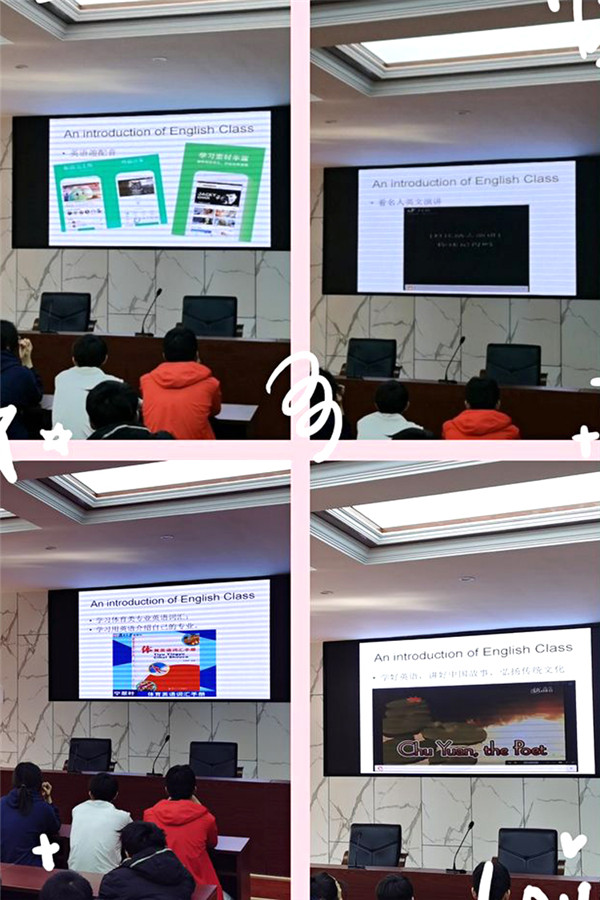 李婷婷老师由一段英语短片开始了趣味英语课堂的宣讲。她向我们展示了英语的学习不只是枯燥的书本还包含了英语演讲,英语短剧,英语趣配音等。看着一段段熟悉的英语电影片段的闪过,同学们心里已经在默默的表演配音了吧!同时英语也能和我国传统文化相互融合发展,与我们最相近的体育英语也吸引了多数同学的目光。