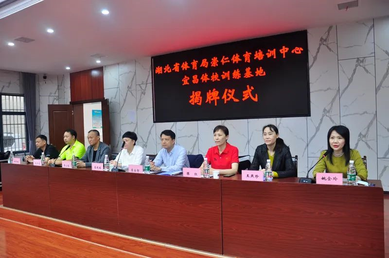 寻芳漫步怜今日,最美人间四月天。2022年4月27日上午9点,宜昌体校隆重举⾏省体育局崇仁体育培训中心“宜昌体校训练基地”揭牌仪式,此次活动由市体校副校长姚金玲主持,崇仁体育培训中心副主任石晓铭、崇仁体育培训中心少儿体校校长陈红、副校长刘华斌、校长助理袁梓轩、体操项目组组长张艺、市文化和旅游局副局长李生智、省十六运会宜昌筹委会专家黄小铭 、市文化和旅游局竞技科科长刘争进、市体校校长王燕珍、副校长张柱国等共同出席本次揭牌仪式,市体校游泳教练及运动员代表参加了本次揭牌仪式。