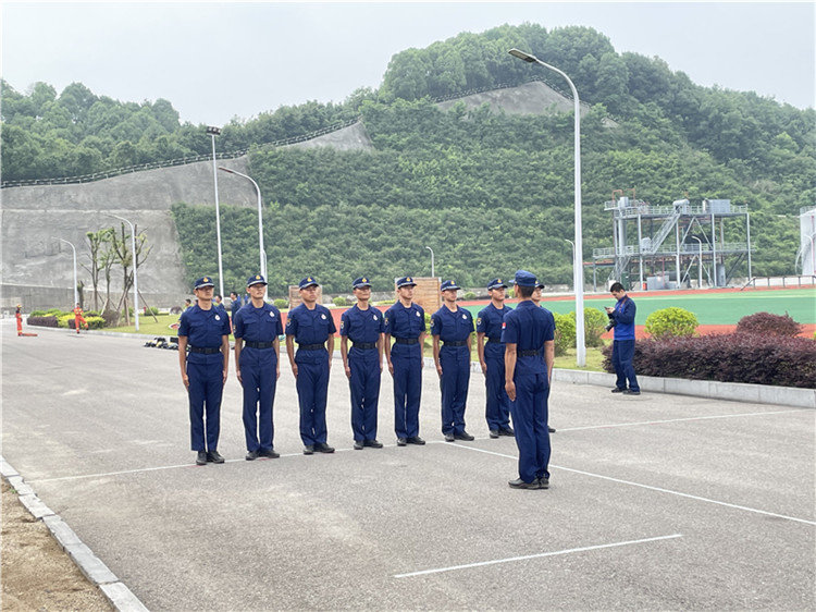 接着,队长带领师生来观看消防员战士们日常队列训练。在教官的指令下,他们迈着整齐划一的步伐,眼神坚定且自信,动作迅速且刚毅。