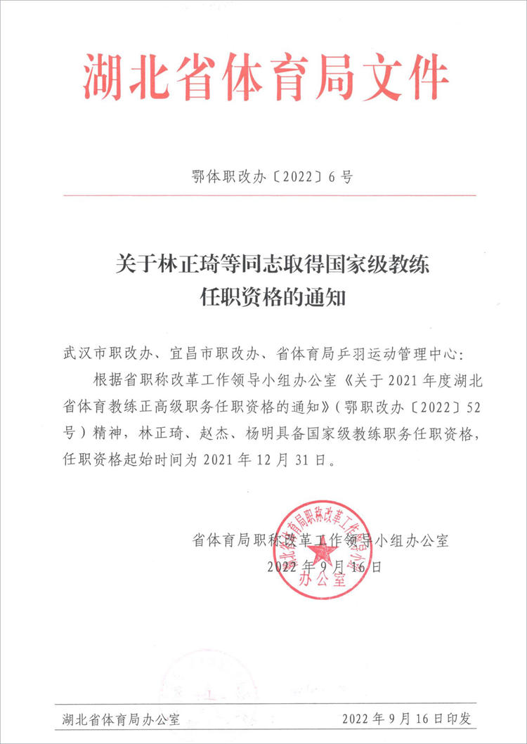 对于赵杰教练取得宜昌第一个“国家级”教练员任职资格,宜昌市体育运动学校全体师生表示热烈地祝贺!