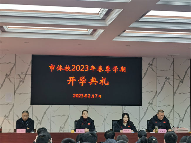 学校党总支书记、校长王燕珍最后致辞,向全校师生致以了新学期的问候,并对市体校在极不平凡的2022年里,决战省运、教学训练、行政管理、后勤建设等方面作了回顾,对2023年的工作进行了部署和展望。并表示成绩的取得离不开各级领导对学校工作的关心支持;离不开全校师生精诚团结、奋力拼搏的结果,并向一年来为学校振兴和发展做出突出贡献的全体师生表示最诚挚的谢意。她再次激励同学们志存高远,胸怀天下,勇于挑战,成长为国家体育事业的栋梁之材,在赛场上敢于“争”、“拼”、“抢”,树立顽强拼搏、永争第一的信念。她勉励教师们坚守教育初心,永葆教育热情,务实笃行,锐意进取,向高质量的教育、体育事业奋进。全体师生要同心同向、共克时艰、共创辉煌。