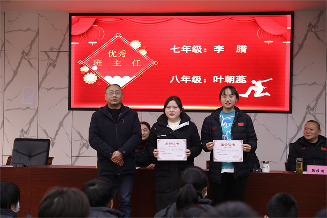 副校长刘志强为获得优秀班主任的老师颁奖