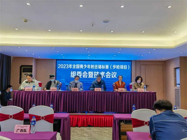 3月27日下午4点,2023年全国青少年射击锦标赛(步枪项目)组委会暨技术会议在汇豪国际酒店三楼多功能厅如期举行。出席会议的领导有国家体育总局射击射箭运动管理中心射击部部长白军华,湖北省体育局射击运动管理中心主任李冰,以及组委会相关领导和参赛代表队领队等。