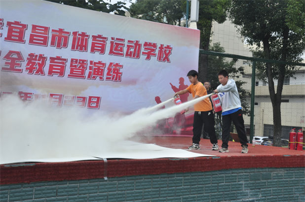 随后全体师生按照演练方案各就各位,严阵以待。上午11点20分,消防安全演练正式开始,各班班主任和教练员指挥学生捂住口鼻,俯身弯腰,快速有序地来到笼式足球场,进行干粉灭火器的实操演练,整个演练过程紧凑有序,达到了预期的效果。全校师生包括外聘的保安和学校食堂工作人员均到场参加了培训及演练。