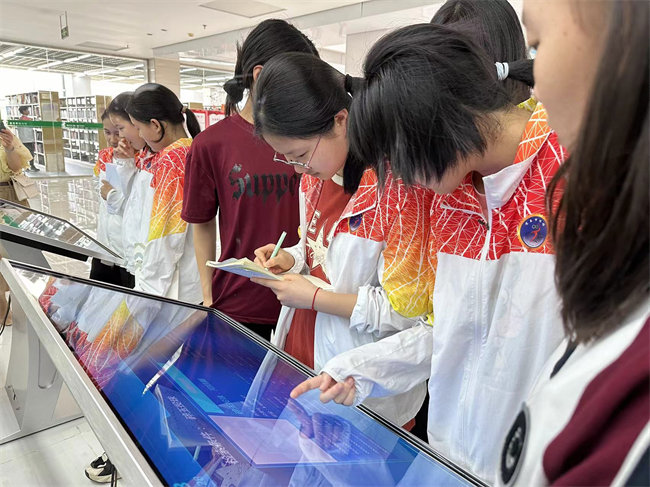 在图书馆少儿部主任余露雲的引导下,同学们参观了图书馆的各个区域,了解了图书馆的功能布局和服务内容。他们穿梭在图书馆的各个阅览展厅间,感受着书香气息,仿佛置身于一个知识的海洋。同学们或驻足细看书目,或轻声交流心得,每个人都被图书馆的宁静氛围和丰富的藏书深深吸引。