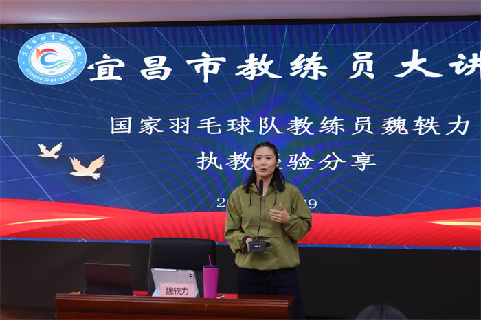 10月29日上午,宜昌市教练员大讲堂在市体校举行,本次大讲堂邀请了从市体校走出去的宜昌参加奥运会第一人,2008年奥运会羽毛球女双铜牌获得者,现役国家队羽毛球女双组教练魏轶力分享她在国家队执教的经验,市体校全体教练员参加。
