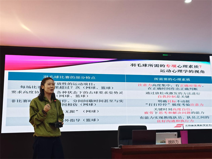 她强调心理素质培养是取得成功的重要环节,并分享了她在重大比赛中如何帮助运动员调整心态,克服压力,保持专注。给运动员们信心的建立和心理韧性的培养,鼓励他们在面对困难和挫折时永不放弃。