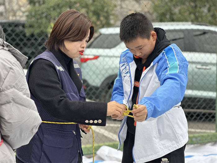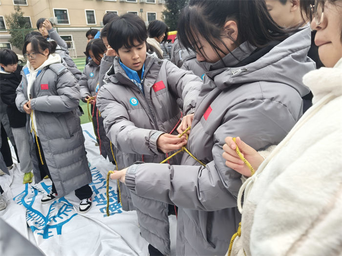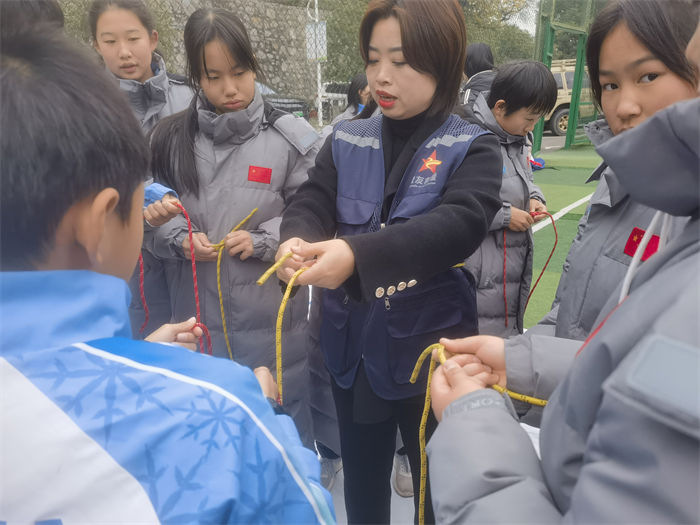 面对紧急情况,一根绳子可能就是生的希望。逃生绳结培训老师殷红梅,以其娴熟的手法,现场教授了多种实用的逃生绳结打法,如双套结、普鲁士结等,不仅强化了同学们的动手能力,更提升了他们在复杂环境下的生存自救能力。